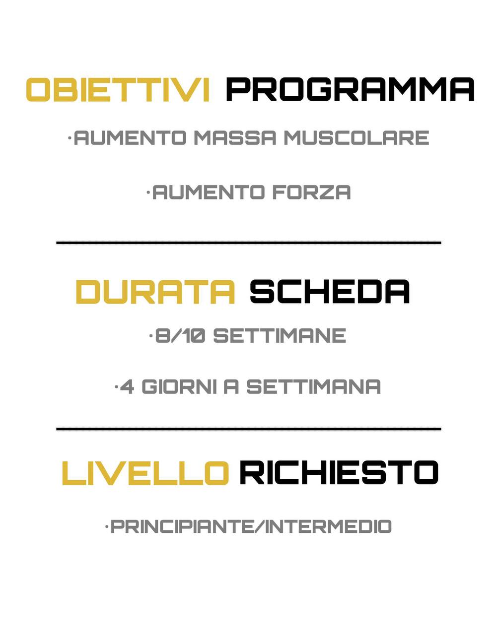 Il piano è basato su 4 giorni a settimana, per due mesi di allenamento pesante.